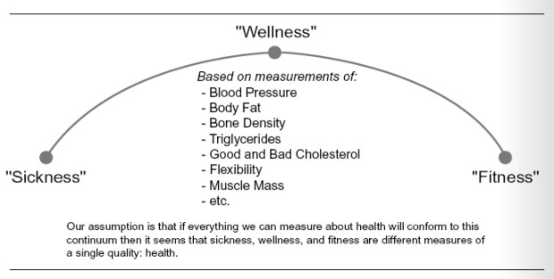 The quality of your health falls onto a continuum, is determined by specific measurements and falls into one of 3 categories: sickness, wellness, or fitness.