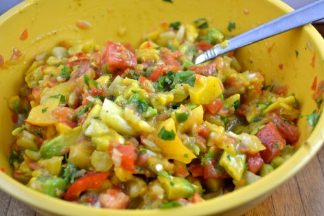 Summer may have vanished before our very eyes, but the taste of summer can still linger. Try this super fresh tasting salsa over your favorite cut of grilled steak or fish or simply by the spoonful and have a summer party in your mouth!